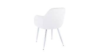 No need to rest your elbows on the table as these dining chairs with armrests provide a convenient place to put them while seated. Designed so that the chairs can be pushed in when not in use, the integrated armrests are set to the perfect height while sleek and comfortable. Upholstered in a white leather-look fabric with minimal stitching for a clean look, the padded back and sides curve around the cushioned seat for a soft feel. Angled and tapered chrome metal legs add a stylish appeal. Sold as a 2-piece set, these chairs have a modern-meets-retro style ideal for an eat-in kitchen or formal dining room, or as accent chairs in other rooms.Features