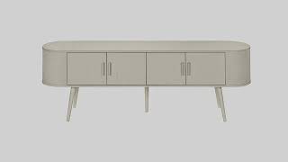 Introducing our sleek and trendy tv stand that will elevate your living space to the next level! This 72 inch console is durably designed with solid wood legs and solidly constructed to ensure long-lasting quality. This console features a smooth antique white laminate finish on all sides with an easy to clean top adding a touch of retro style to your home decor. Keep your living room organized with spacious 4 door storage cabinets with sleek handles in silver and two hidden cable management holes to keep unsightly wires out of sight. The curved sides bring a contemporary and mid-century flair to this tv stand making it the perfect addition to your bedroom or living room. Not only is this tv stand easy to assemble with illustrated instructions floor protectors and all hardware included but with closed storage options you can now keep your media entertainment center neat and tidy in fashionable style. Plus with a 5 year limited warranty you can trust that this tv stand is built to last.Features