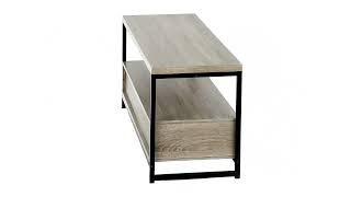 Double up on storage with this TV stand that offers 2 tiers and 2 drawers to neatly organize your electronics and other items. The spacious top shelf with thick-panel construction accommodates most TVs when centered. Below the open-concept shelf provides ample room for audio-visual components and easy cable management while the 2 drawers can store remotes game controllers or entertainment center accessories. The shelves and drawers in a dark taupe wood-look finish are supported by a sleek black metal frame that gives a modern look. With its space-saving design this media console is a great choice for a living room or bedroom in an apartment condo or small home.Features