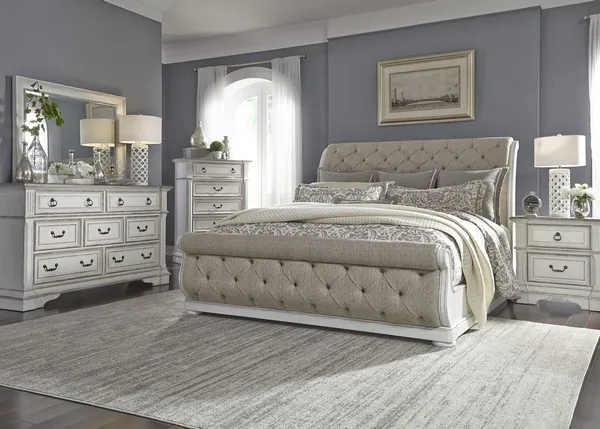 Abbey Park Antique White Upholstered Sleigh Bedroom Set