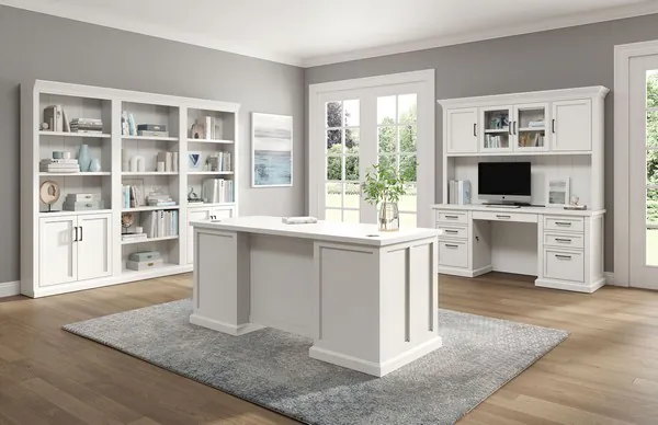 The Abby collection blends modern versatility with classic looks. Simple refined details such as modern shaker doors and bead board panels are accentuated with simple black hardware and a crisp white finish. Behind each door or drawer, you will find the quality and functionality you’ve come to expect from Martin Furniture. Ergonomic design and current technology have been thoughtfully integrated into this collection with adjustable height desks and built-in power centers. Abby is clean and elegant, perfect for shared family spaces that can be combined in any arrangement to create your ideal home office, media room or workspace.