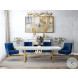 Inspired by our love for Hollywood glam decor, the Adeline dining table is the ultimate statement piece for your room. The contrasting white lacquer top and brushed gold base give this table the uniquely stylish look you want. Pair the Adeline with any of TOV's luxe velvet dining chairs for a sensational look