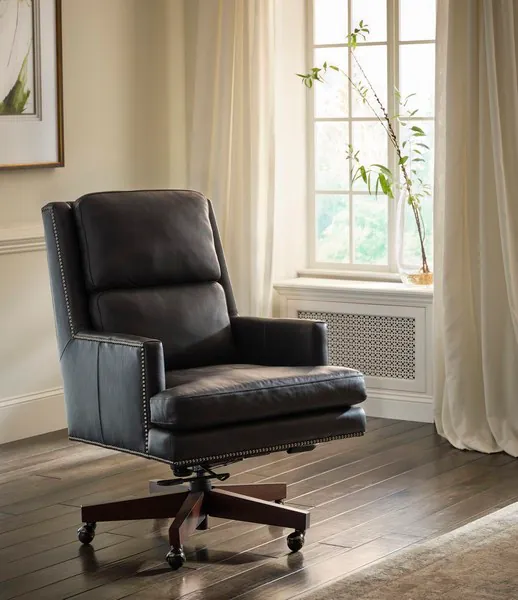Admiral Luxe Midnight Leather Upholstered Executive Chair with Nailhead Trim