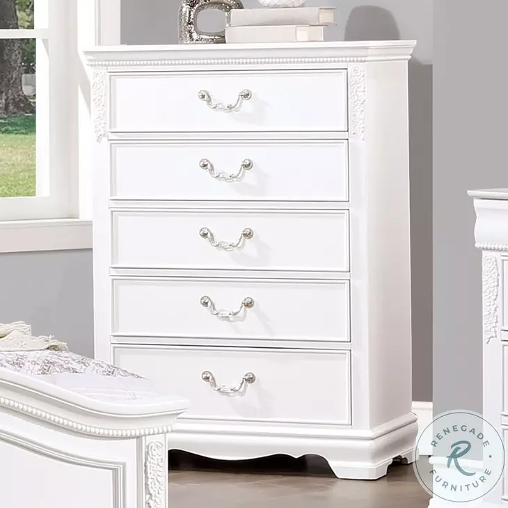 With a classic design and plenty of storage on its case goods, this stylish bedroom set provides everything your growing child needs in a bedroom. The bell-shaped headboard and footboard with crown molding is timeless, combined with faux wood carved details that adorn the edges of each piece. There are intricate nickel hanging pulls and curved bottom aprons on the case goods. Even the mirror shares the headboard's intricacy--making sure that each piece helps provide a cohesive transitional look.Features