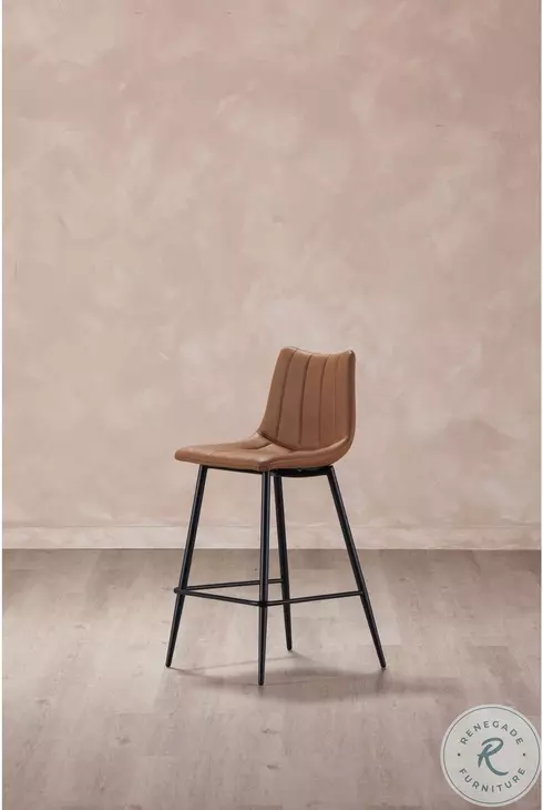 Contemporary modern counter stools get a new take with this sleek aesthetic. Available in several colors, the Alibi counter stool features striking vertical line stitches that add subtle detail to its monochromatic design. A soft vegan leather seat is shaped to fit for comfort so guests can relax at the island or bar counter.Features