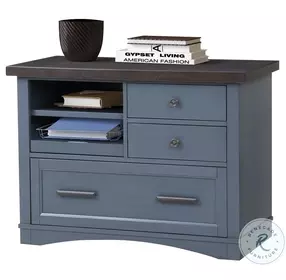 Working in style is a certainty with the fresh look and functionality of the Americana Modern 60-inch Writing Desk. Its timeless beauty is brought to life with a denim finish accented with a contrasting wood-grain top and metal hardware. Two drawers provide essential storage while a dual AC and USB outlet power center is conveniently located under a flip-up access panel to make charging electronics a breeze.Features