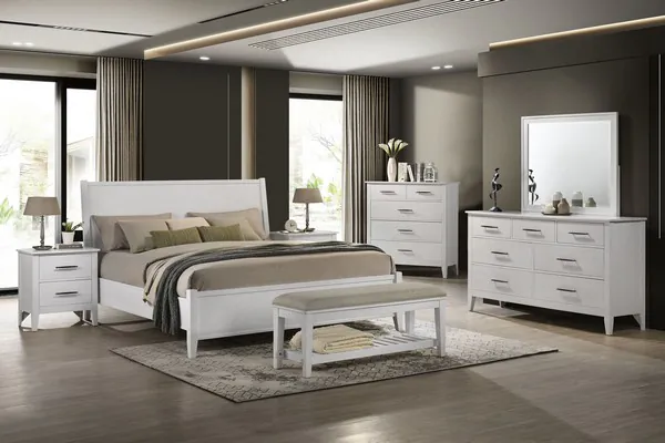 Andover White and Gray Upholstered Bed Bench with Storage