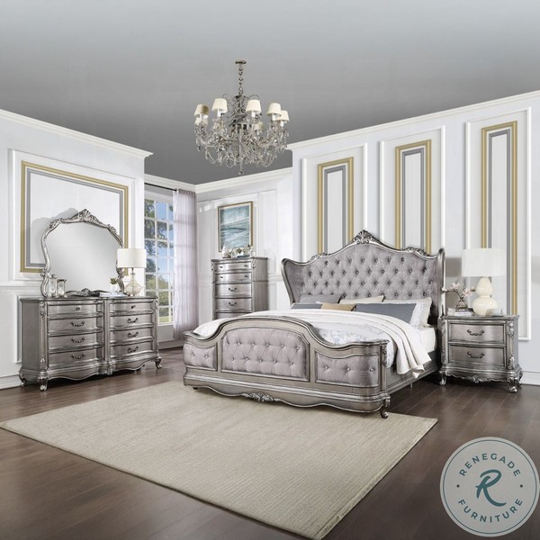 Ariadne Velvet and Antique Platinum Upholstered Bedroom Set