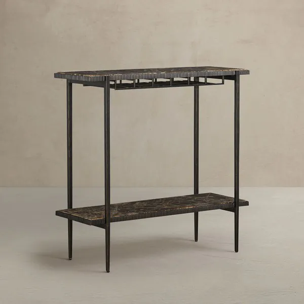 Ariana Forged Antique Bronze and Marron Imperial Rectangular Marble Top Bar Console