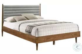 Invite a dose of style and comfort to your bedroom with our Artemio Wood Platform Bed Frame. Combining the comfort and coziness of an upholstered headboard with the durability of a wooden frame our bed serves as a perfect blend of style and functionality. The upholstered headboard features a neat and elegant channel tufting detail to bring style and character to your bedroom or guest room. It includes slim track arms and is perched upon slender legs to make any room feel open and airy. Our versatile platform bedframe can be used with most types of mattresses including innerspring memory foam hybrid and latex. Crafted from engineered wood the bed is both durable and easy to maintain to ensure years of use. The Artemio Platform Wood bed frame is available in a rich walnut and sleek black wood finish with beautiful gray upholstery to create the perfect look for your bedroom. Available in king and queen size our bedframe is perfect for any modern or contemporary apartment or house. It provides a comfy space for reading lounging and enjoying a restful sleep at night.Features