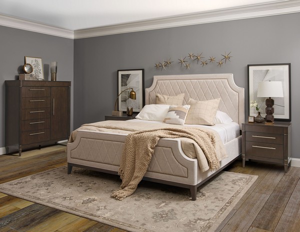 Asher Park Piano Brown Upholstered Queen Panel Bed with Nailhead Trim