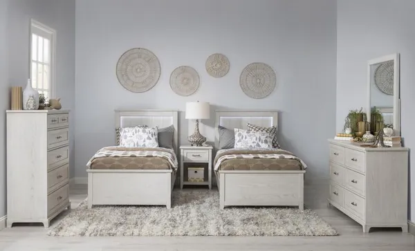 Ashton Bleached Linen Youth Panel Bedroom Set with LED