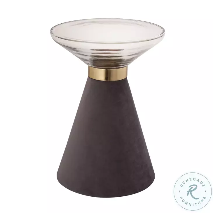 Enhance your space with the modern and stylish Aurora side table. Featuring a transparent cloud-hued glass top perched upon a grey conical base and complemented with gold accents, this table will be an instant eye-catcher in any room.Features