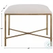 Thoroughly modern yet inspired by the classics, this small bench displays a stylish iron frame in a rich antique gold finish, upholstered in a crisp white textured fabric.Features