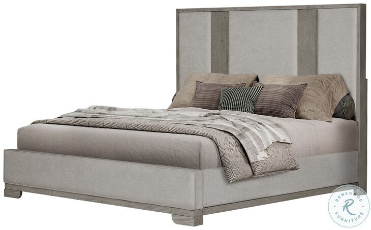B00913 Water White And Light Taupe Quen Upholstered Panel Bed