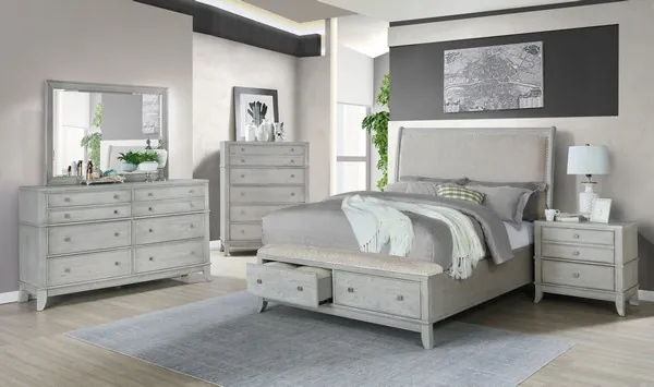 B0191A Brushed White Upholstered Sleigh Storage Bedroom Set