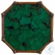 The octagonal end table has a penn shell top that has been stained emerald green and surrounded by antique brass finials. The eight sides are made of crushed bamboo veneer, as is its one drawer. The stationary shelf below features leather wrapped bamboo slats. This unique piece functions as an eye-catching chairside table or end table.Features