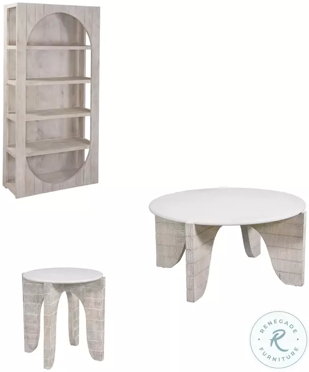 Bali Collection from Bassett Mirror crafted with a solid mango base in a white-wash finish, adorned with horizontal grooving for a planked effect, and topped with a textured resin in a faux plaster finish, this table is a true work of art.