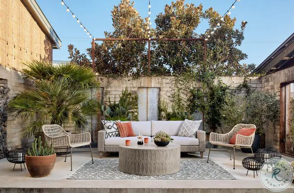 Bandera White Performance Fabric And Distressed Grey Outdoor Woven Dining Chair