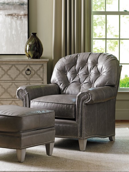 Bayville Oyster Bay Millstone Leather Upholstered Lounge Chair with Nailhead Trim
