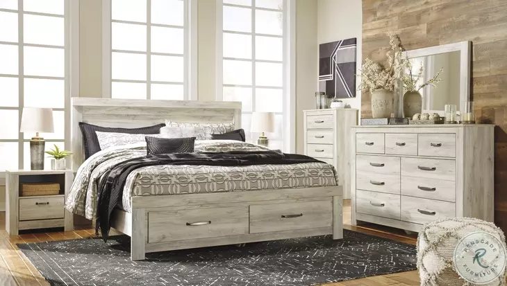 Your bedroom isn't just a room. It’s a canvas. Express your farmhouse style with the Bellaby bed. Wispy white finish over replicated oak wood grain brightens up the space with charm. This clean-lined profile is the perfect authentic foundation for inviting decor.Features