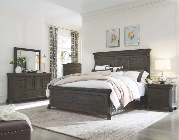 Bellamy Peppercorn Sleigh Bedroom Set with Shaped Footboard