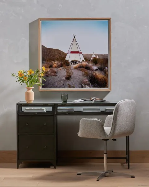 Meet traditional statement pieces updated with clean, modern materials. Shaped, dark metals mix with glass, brass and wood detailing. Blending centuries and styles from refined machine shop to mid-century modern, arched and glass-fronted cabinets, shadowboxed tables, mirrored surfaces and detailed parquetry make an eclectic design statement.
