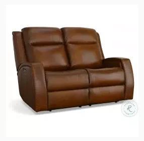 Blair Cognac Leather Zero Gravity Power Reclining Console Loveseat