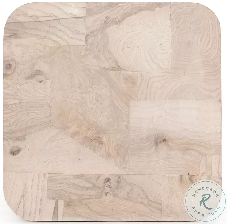 Lighten up. Made from bleached ash burl, a soft-squared tabletop features a patchwork pattern to bring novel movement to the modern coffee table. Finished in an ashen walnut, mahogany veneer sides and an inset base complete a beautifully light look.Features