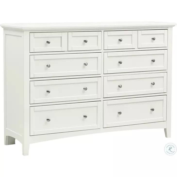 Made in the usa, this triple dresser with eight drawers offers casual style to any bedroom in your home. Its design elements with framed drawer fronts, tapered feet, and simple molding create a look that fits within contemporary to transitional space. The base rail is gently curved to add dimension to complete this dresser.Features