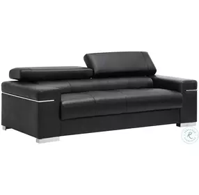 Boyington Black Leather Power Reclining Sofa with Adjustable Headrest