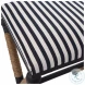 Rustic iron frame with a nautical touch, wrapped in neutral fiber rope accents. Cushioned top is a sturdy, sailor-striped cotton in crisp navy and cream with performance treatment. Seat height is 28".Features