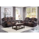 With well appointed features that create not only a comfortable seating experience but a functional one as well, the Briscoe Collection will be a welcome addition to your home. The brown premium faux leather covering creates a style that will blend effortlessly with your transitional decorative preference. The sofa features dual glider reclining ends and a drop down center seat back with cup holders and tabletop, the dual glider reclining ends of the love seat with center console featuring cupholders and storage and the glider reclining chair all feature manual motion mechanisms operate with the pull of a side mounted tab, that once engaged, take you from seated to reclined in an easy motion.