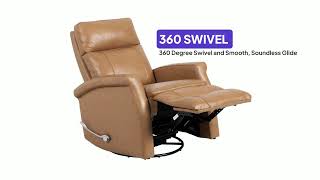 The Bristol swivel glider recliner is a stylish and comfortable choice for any living space. Its transitional key arm and nickel-finished handle add a touch of elegance, while the effortless one-finger pull recline makes relaxation a breeze. The chair is upholstered in rich soft leather, and the 360-degree swivel feature adds to its functionality. Additionally, it is constructed with FSC Certified sustainably sourced woods in a completely solar-powered facility, ensuring both quality and environmental responsibility.Features