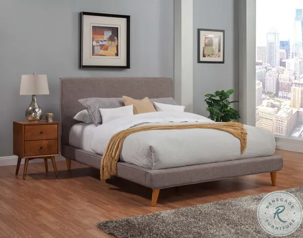 Britney Light Gray Linen Queen Upholstered Platform Bed
