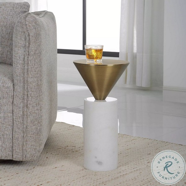 Brock White Marble and Brushed Brass End Table
