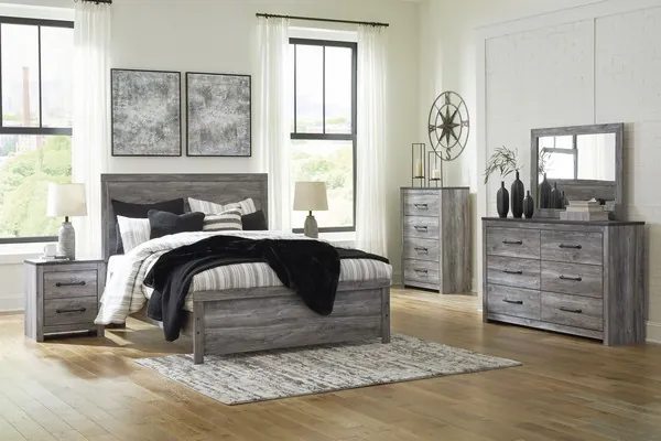 Alluring smoky gray hues create an ambiance that just feels right. This Bronyan Collection has a charming wood like appeal enriched by neutral tones and a textured look. Its calming presence brings a sense of serenity to your space.