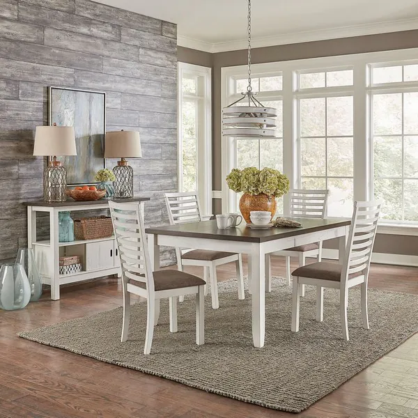 Brook Bay Textured White With Carbon Gray Trestle Extendable Dining Room Set