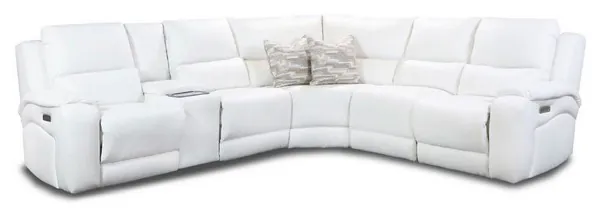 Brookfield White Leather 6 Piece Modular Zero Gravity Triple Power Reclining Sectional with Console and USB Charging