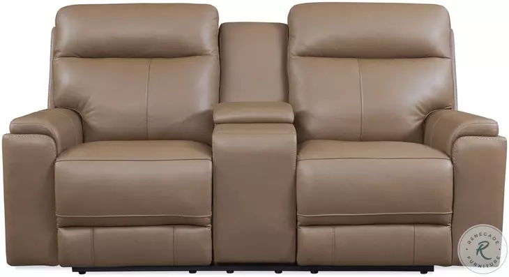 Bryluxe Tuscan Tan Leather Power Reclining Console Loveseat