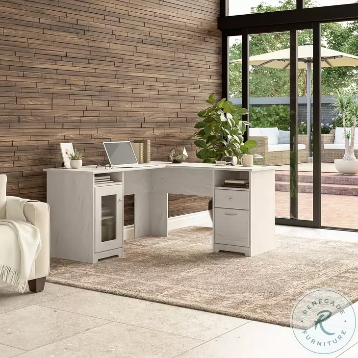 Cabot Linen White Oak 60" L Shaped Computer Desk with Storage