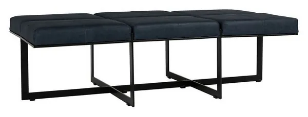 Calvin Nightfall Blue Leather Rectangular Ottoman
