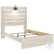 What a delightful take on rustic industrial style. Whether modern loft or modern farmhouse, this full panel bed makes itself at home. The wispy whitewash palette enhances without covering the grain for that weathered look you crave. Love to read in bed? You're sure to find the retro-chic light sconce and USB plug-ins on the open-slat style headboard such a bright idea.Features