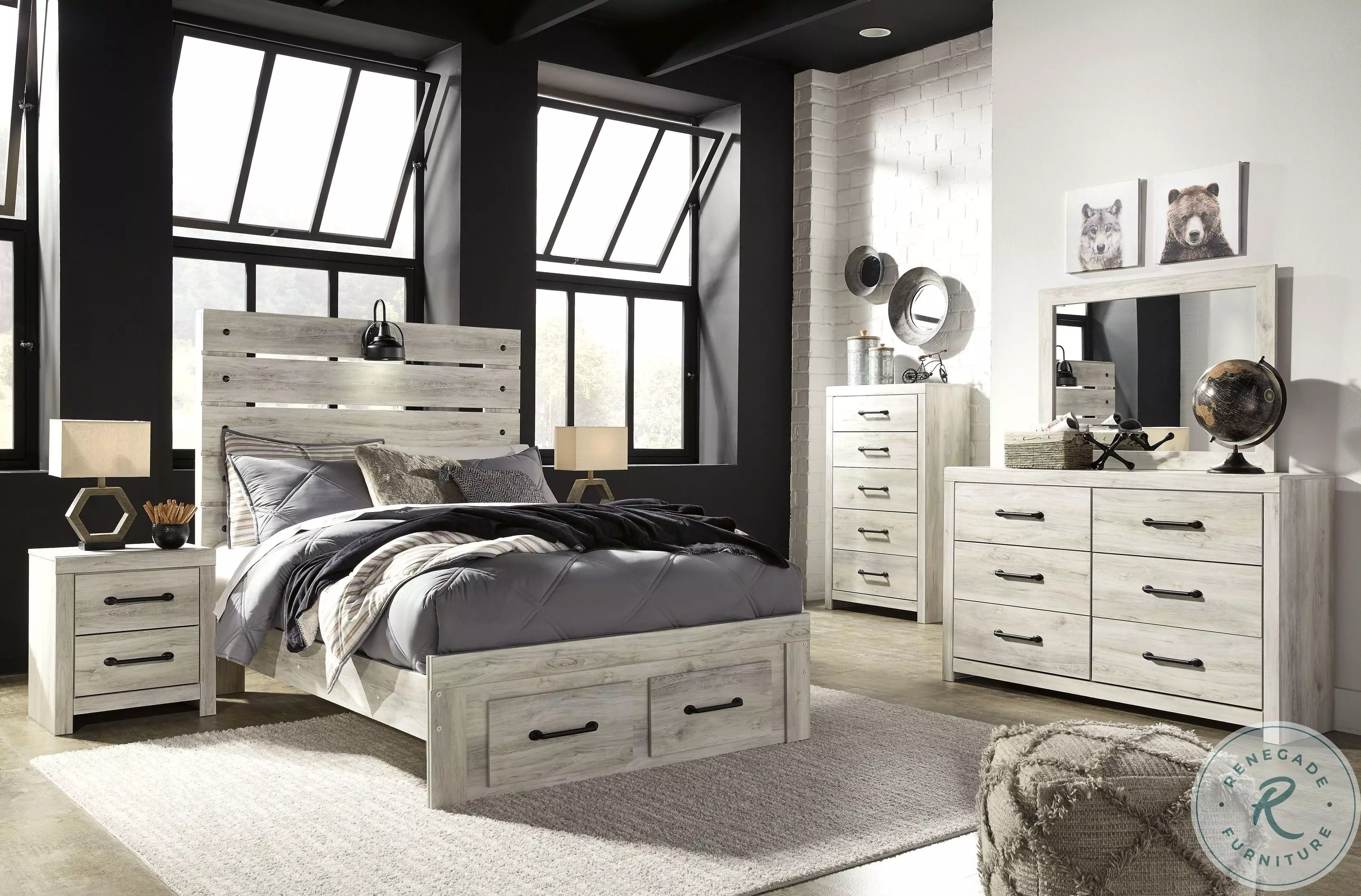 What a delightful take on rustic industrial style. Whether modern loft or modern farmhouse, this Cambeck Collection makes itself at home. The wispy whitewash palette enhances without covering the grain for that weathered look you crave. Elongated metal drawer pulls elevate the aesthetic.