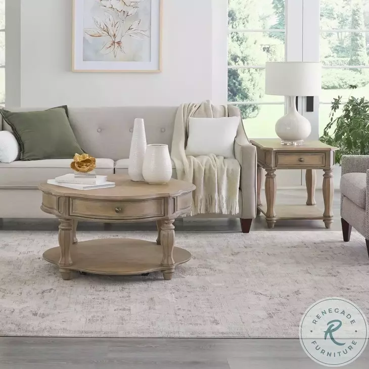 Camellia Manor Weathered Bisque Round Cocktail Table