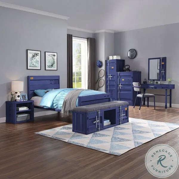 Cargo Gray Fabric and Blue 56" Upholstered Bench with Storage