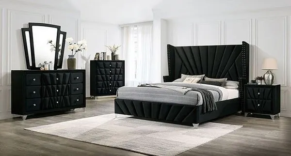 Carissa Black Upholstered Wingback Panel Bedroom Set