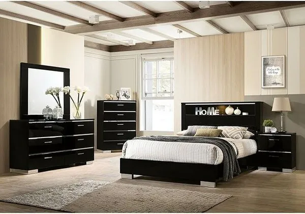Sharp looks that can take over and define a room. This Carlie Collection from Furniture of America brings a modern feel with a splash of alluring chrome accents that help it pop out.