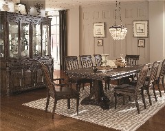 Lost in time and hopelessly romantic, this 17th century medieval Spain influenced Carlsbad collection is exactly what you have been looking for to add that elegant twist to your home. Each storage piece in both the dining room, and bedroom collections make it easy to always find space to store things neatly away. Tapered feet, turned legs, stacked bun feet, framing, and metal accents are all used in this collection to create a look that you won't be able to resist. Completed in a Dark Brown finish, you will feel as though you are the ruler of your sophisticated castle with this collection in your home.