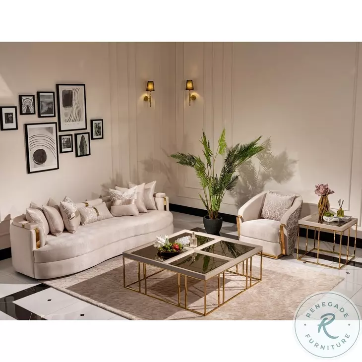 Fall in love with the grandeur of the Carmela Mansion Sofa - a true masterpiece that exudes understated elegance and romantic charm. This majestic sofa is covered in a subtle jacquard fabric, beautifully accented with titanium gold metal band arms and stunning decorative pillows. With a total of seven pillows, including a center oblong pillow adorned with a belt finished in gold, the Mansion Sofa is the epitome of luxury and comfort. Sink into the plush velvet piecing and metal chain accent pillows and let yourself be transported to a world of pure relaxation. The Mansion Sofa will create a cozy, intimate atmosphere that is simply irresistible.Features